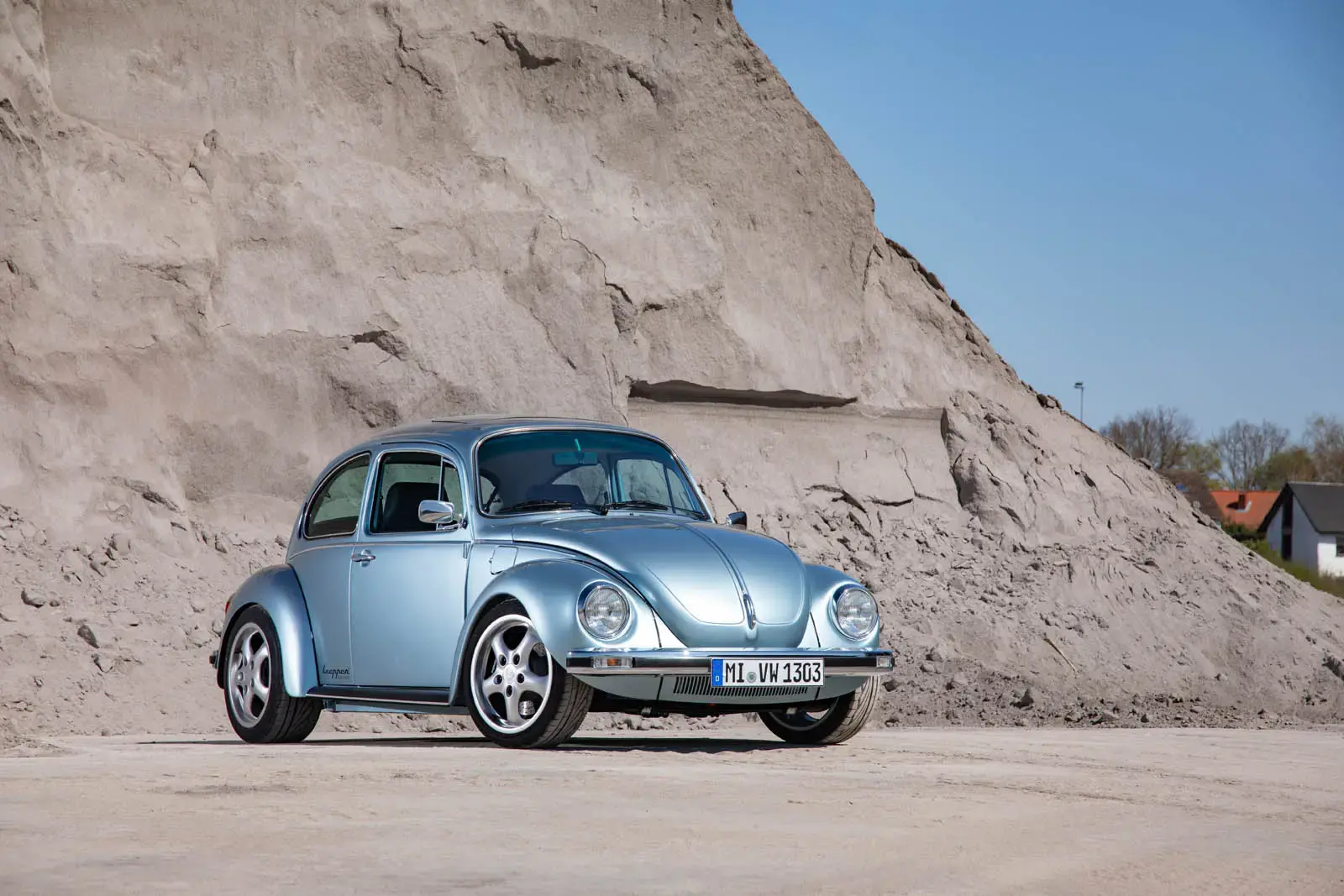A seemingly stock, marathon-blue VW Beetle 1303 has been transformed into one of Germany’s most extreme EV restomods.