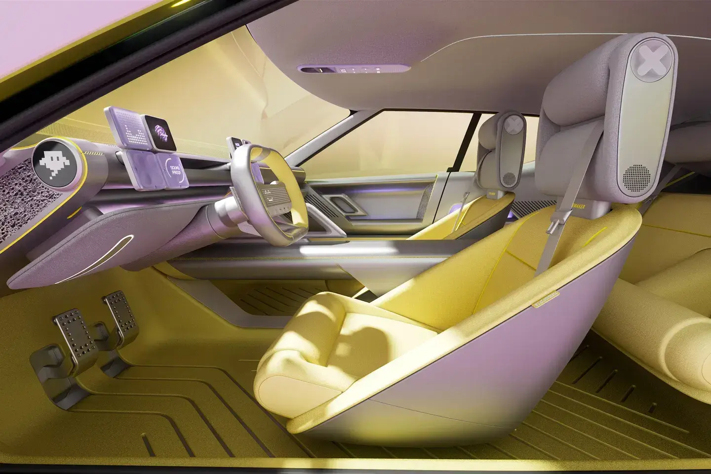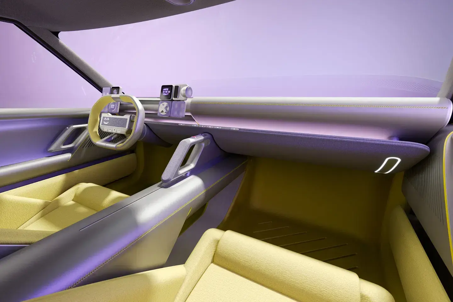 Inside, the Concept Three embraces sustainability with extensive use of recycled materials and a vibrant yellow-accented cabin. Hyundai describes the interior as warm and intuitive, prioritizing serenity and clarity through soft surfaces and user-focused layouts.