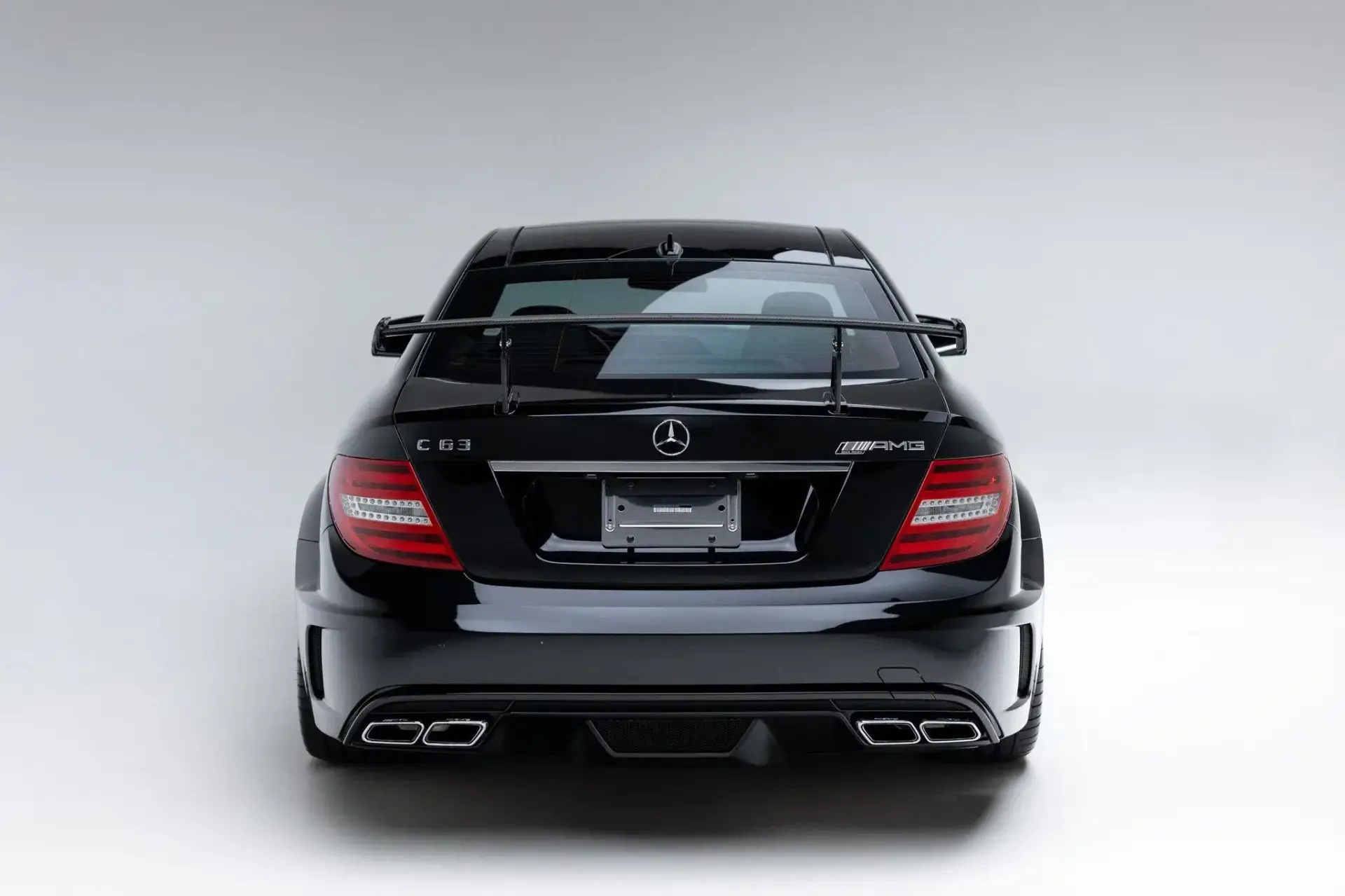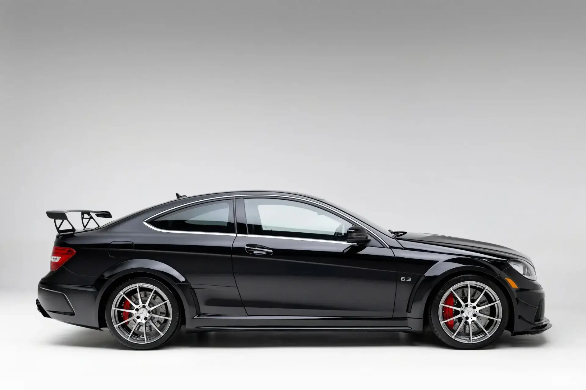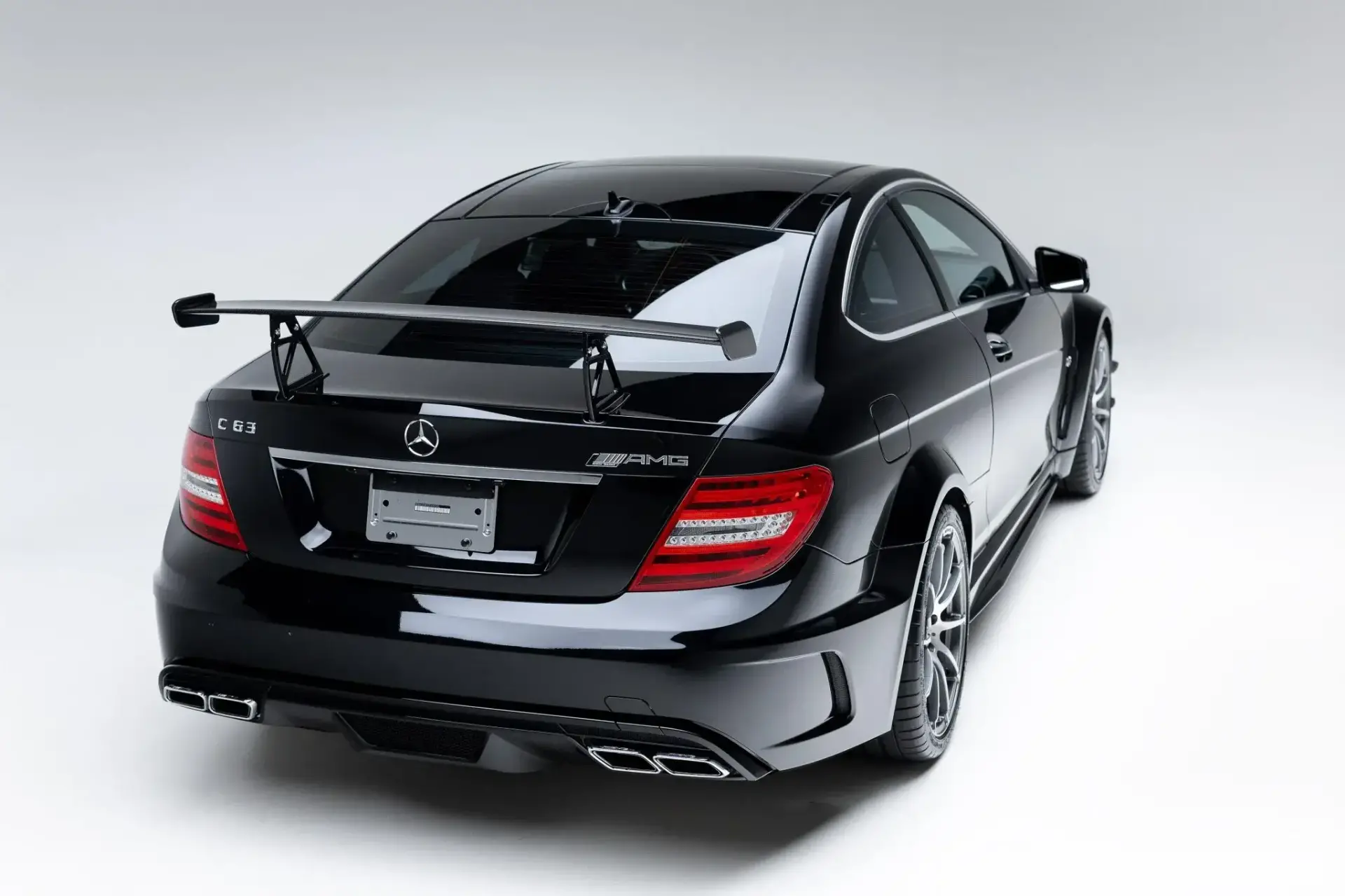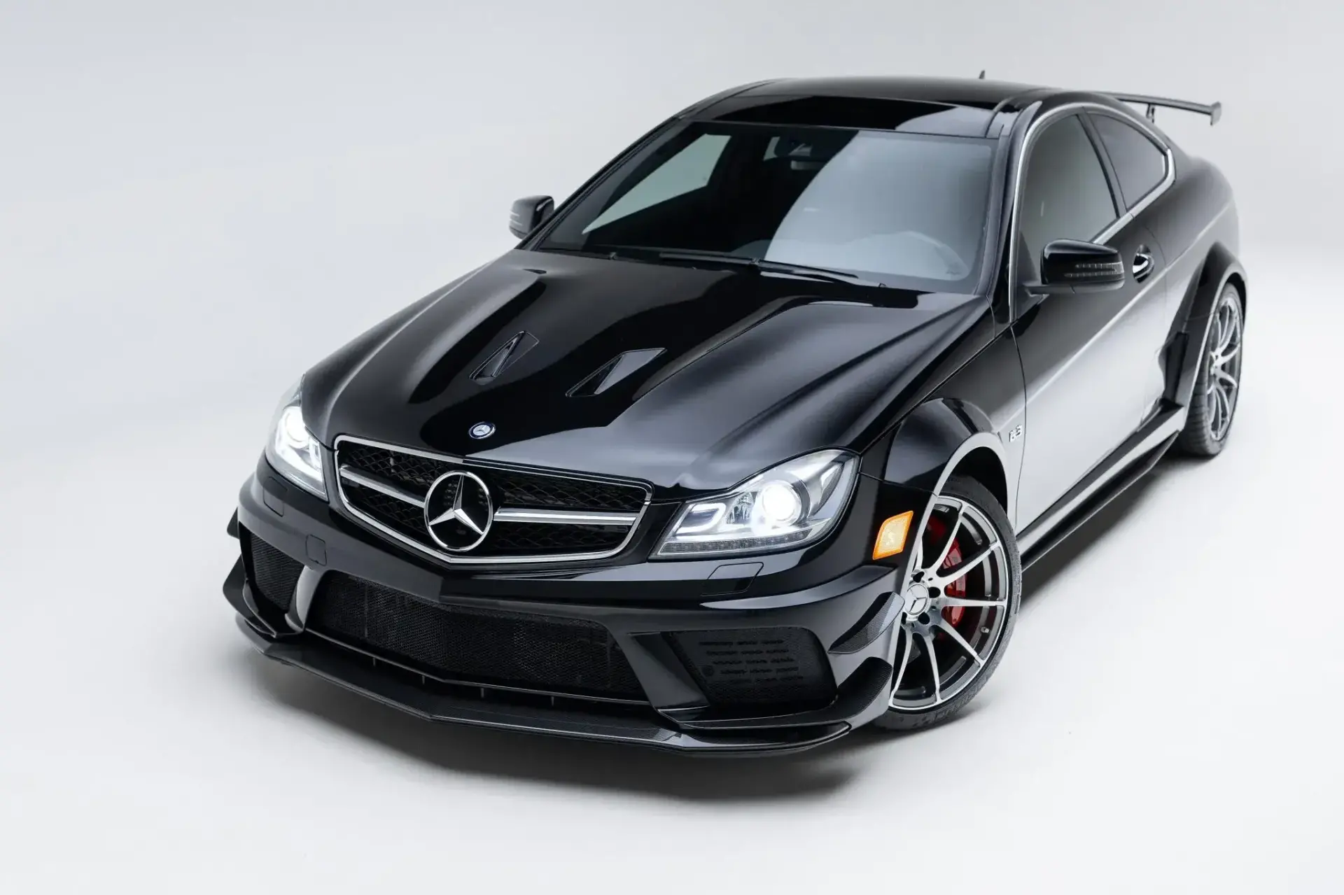 The C63 AMG Black Series produces 510 hp from its 6.2-liter naturally aspirated M156 V8, reaching 60 mph in 4.2 seconds with a top speed of 186 mph.