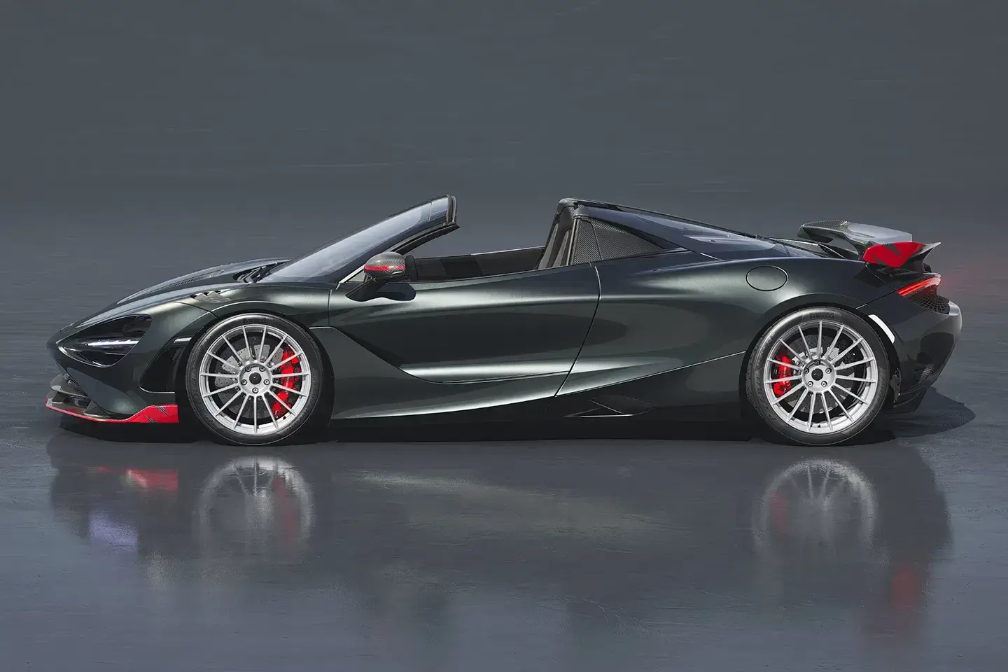 The HDK, offered for the first time on the 750S Spider, includes a redesigned bumper, splitter, higher rear spoiler, and a body-colour underwing panel, all echoing the aerodynamics of the original F1 GTR.