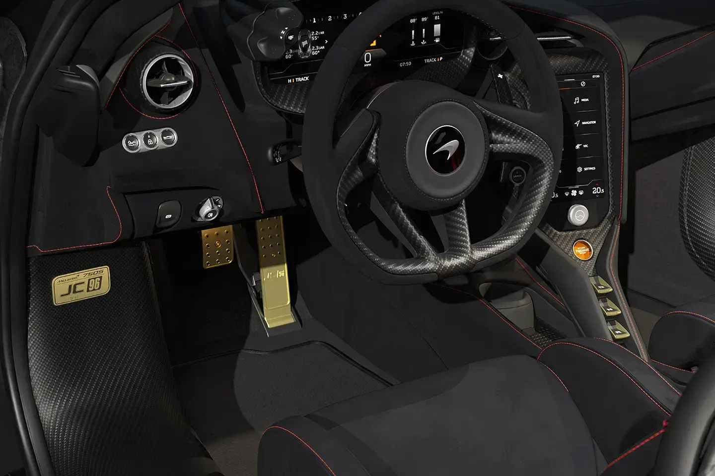 Inside, the JC96 Performance full Alcantara interior features gold-accented pedals, drive switches, and a dedicated JC96 plaque. Buyers can select contrast stitching to personalize the interior further, underscoring McLaren's dedication to performance and luxury in a single package.